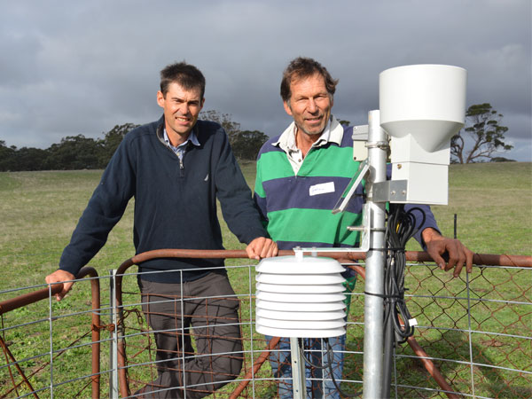Barossa Improved Grazing Group (BIGG) technical facilitator Brett Nietschke, with Graham Keynes, producer host of BIGG’s demonstration weather station located at Keyneton.