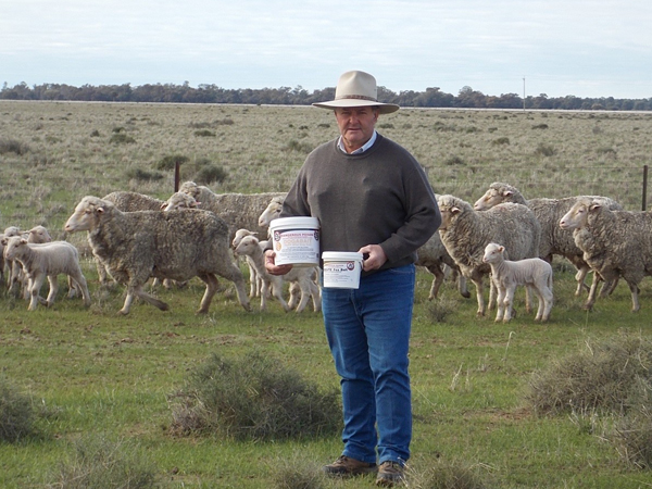 Ian Evans, On Farm Program Manager for Australian Wool Innovation with the new predator baits (image supplied by AWI).