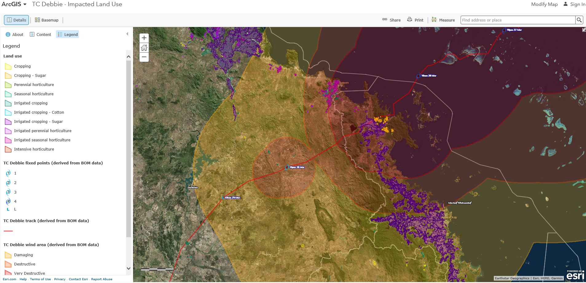 To access other maps outlining the impact of TC Debbie, visit ARCGIS.