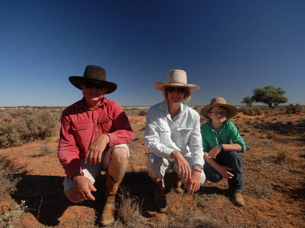 Rangeland grazier Gus Whyte and his family (wife Kelly and son Mitchell).