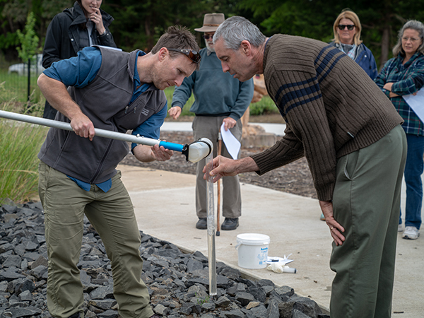 Demonstrating the testing of turbidity levels at Neerim South wetlands.