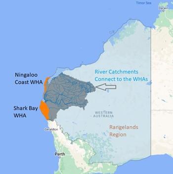 Rangelands NRM Region with the Ningaloo and Shark Bay World Heritage Areas and River Catchments