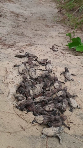 Another even more inhospitable night of sand-filled wind was experienced by the next night shift of volunteers. Turtles rarely run in the daylight. Again the weather drove them to their cars for respite. Had the babies died in the nest? How many had survived the long 72 days. Morning came and went and volunteers returned home with the expectation of another shift standing watch for a third night.