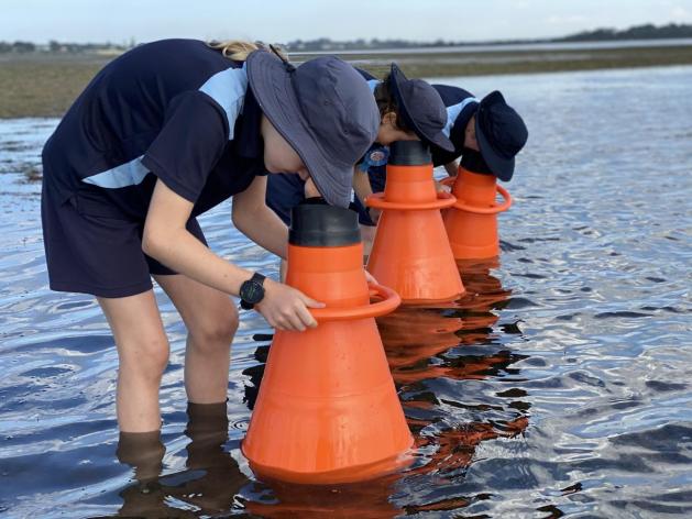Students spent time on the water walking amongst the Swan Bay seagrass meadows using Aquascopes to see beneath the surface, searched for birds through their binoculars along the mudflats and played the high energy game "Migrate!".