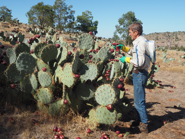 In the 1990s, community members around Maldon, Victoria became alarmed at the invasion of Wheel Cactus (Opuntia robusta) on their properties and historic landscapes. By 2005, members of three local Landcare groups formed the Tarrangower Cactus Control Group (TCCG), specifically to focus on control of this highly invasive plant.