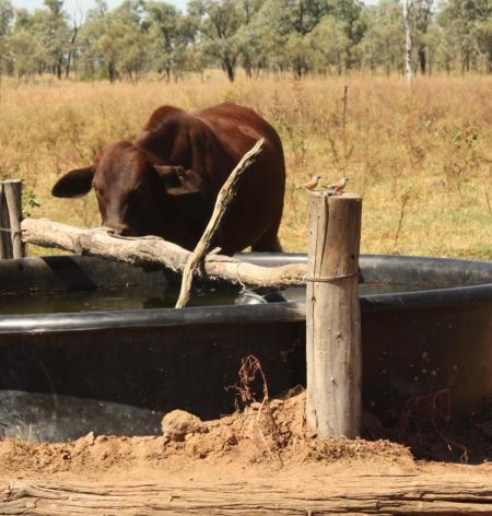 We strolled back to the vehicles to allow some approaching cattle to wander in and get a drink from the trough. As the weed warrior/project officer explained further to the group the field methods and results of the spraying, small birds flew in to drink from the trough's edge and float apparatus. With its distinctive markings, and that they were flying in and out of tall nearby silver-leafed ironbarks' and up and down from underneath the dying weeds, I though it may be the Black-Throated Finch. I looked to others who knew more than I, doing the immediate silent nod towards the BTF a'watering. Their small smiles and head pops confirmed it, with a few quick photos for later. The convoy slowly drove back down to the homestead and the Field Day concluded with home-cooked goodies. The next day, I emailed the photos to a BTF knowledge bank and got concurrence (and the property record there made).