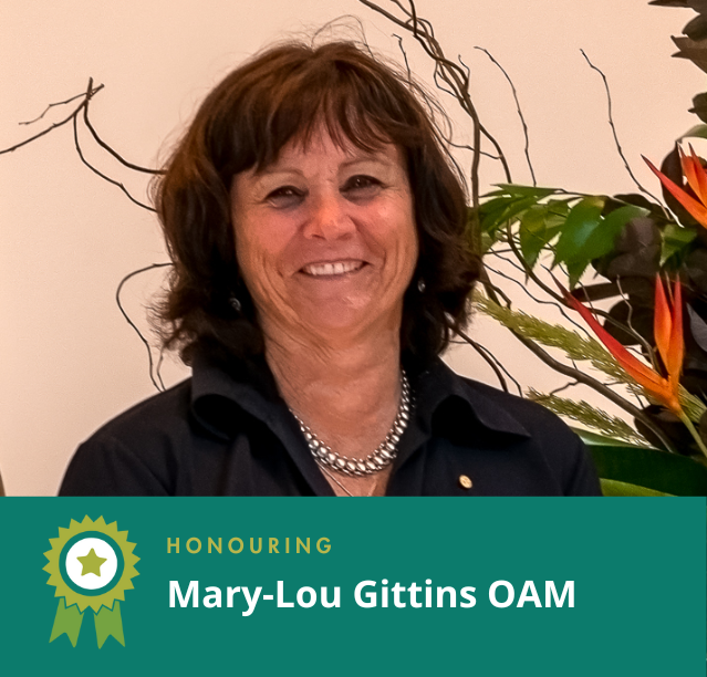 Mary-Lou has been acknowledged many times for her contributions including in 2003, the Individual Landcarer Award in Queensland and in 2019, Mary-Lou was awarded the Medal of the Order of Australia for service to conservation and the environment.